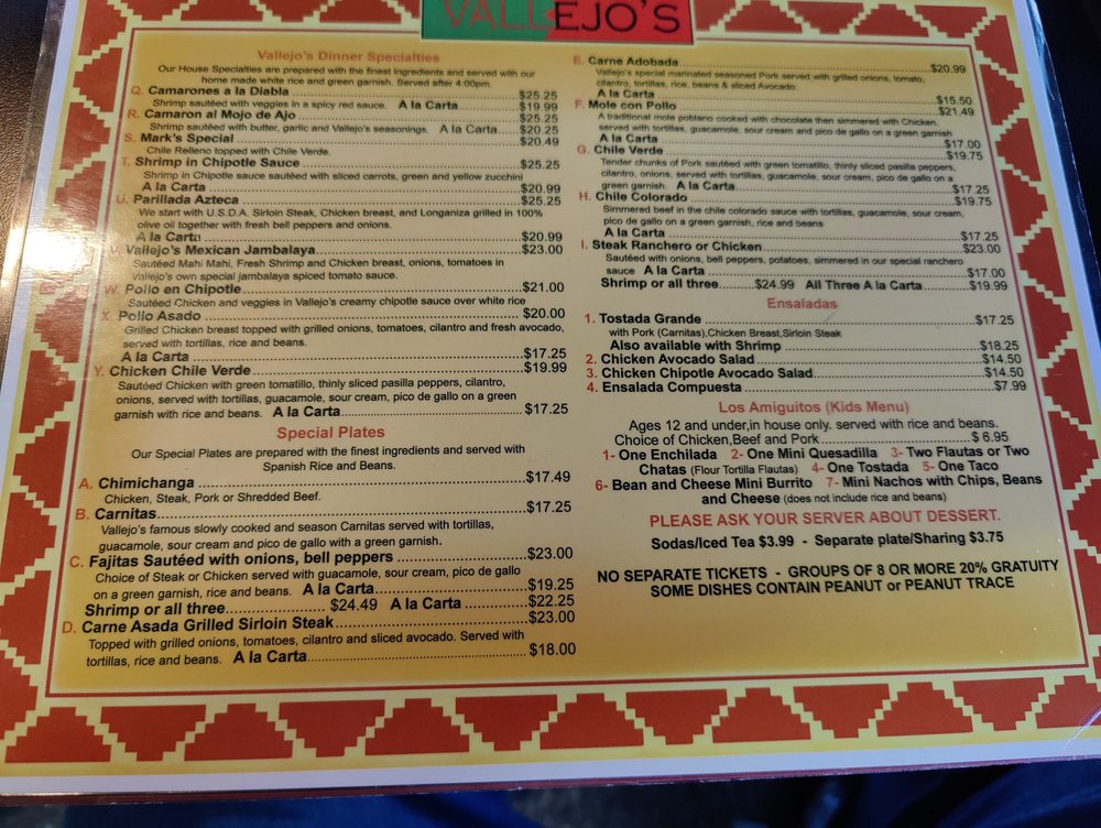 Vallejo's Restaurant Menu